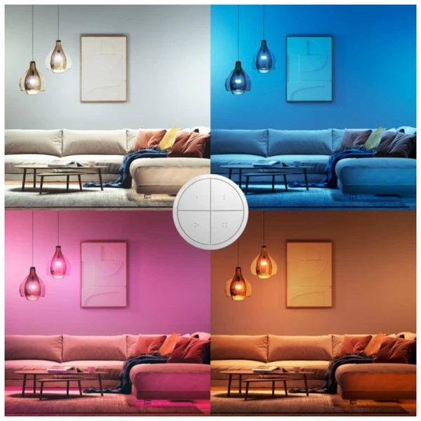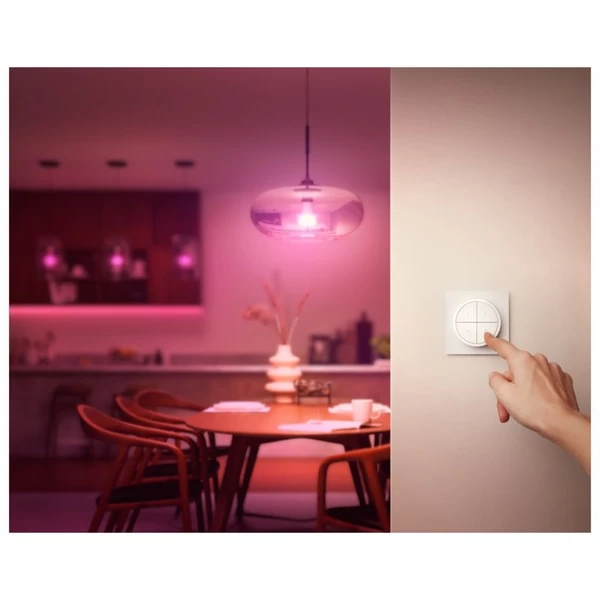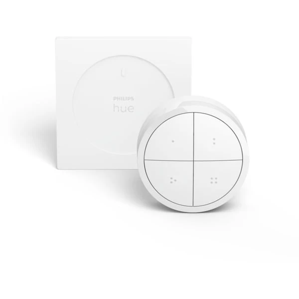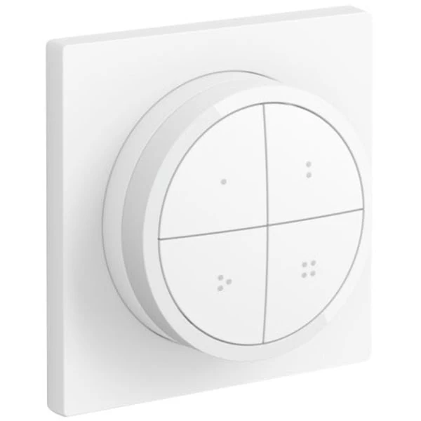 Der Philips HUE bietet vier frei konfigurierbare Tasten und ein Einstellrad. Pro Taste lassen sich bis zu drei Zimmer oder eine Zone steuern. Über das Einstellrad lässt sich die Beleuchtung dimmen. Der Schalter kann entweder fest an einer Wand montiert werden, oder einfach wie eine Fernbedienung benutzt werden.Art.-Nr.: 1855349