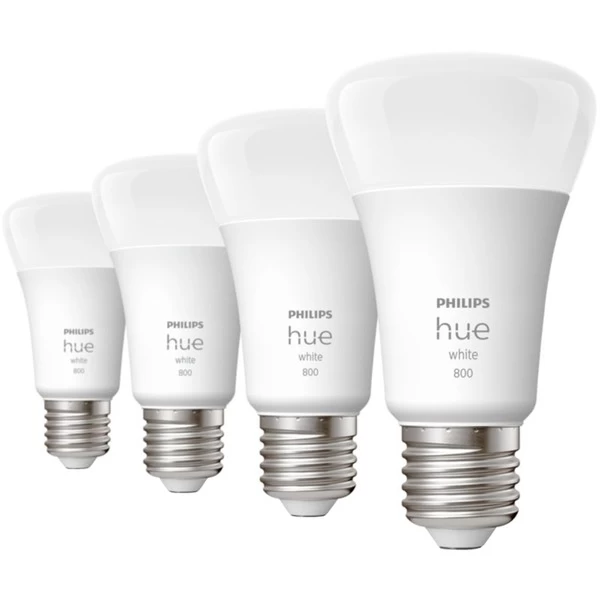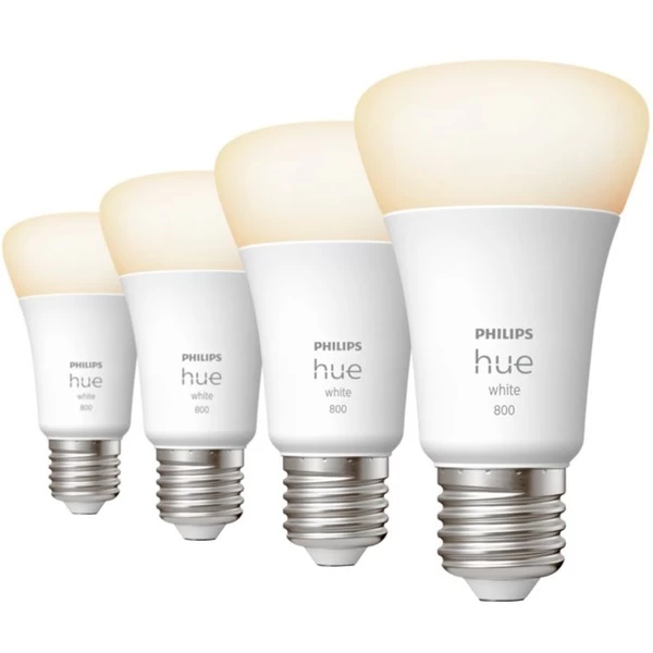 Die Hue White E27 ist ein smartes Leuchtmittel, das per Bluetooth oder über eine Hue Bridge gesteuert werden kann. Diese LED-Lampe für den Sockel E27 erzeugt ein warmweißes, dimmbares Licht mit Abstufungen vom hellen Tageslicht bis zu schummerigem Nachtlicht. Dabei überzeugt sie mit einer Nennlebensdauer von bis zu 25000 Stunden und hoher Energieeffizienz. Dieses Pack enthält vier Leuchtmittel. Art.-Nr.: 1792001